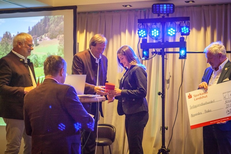 Alexandra Boico nimmt die Auszeichnung aus den Händen von (v.l.) Joachim Reschka, Ben Zamek (vorne), Erich Kühnhackl und Guido Kambli entgegen.